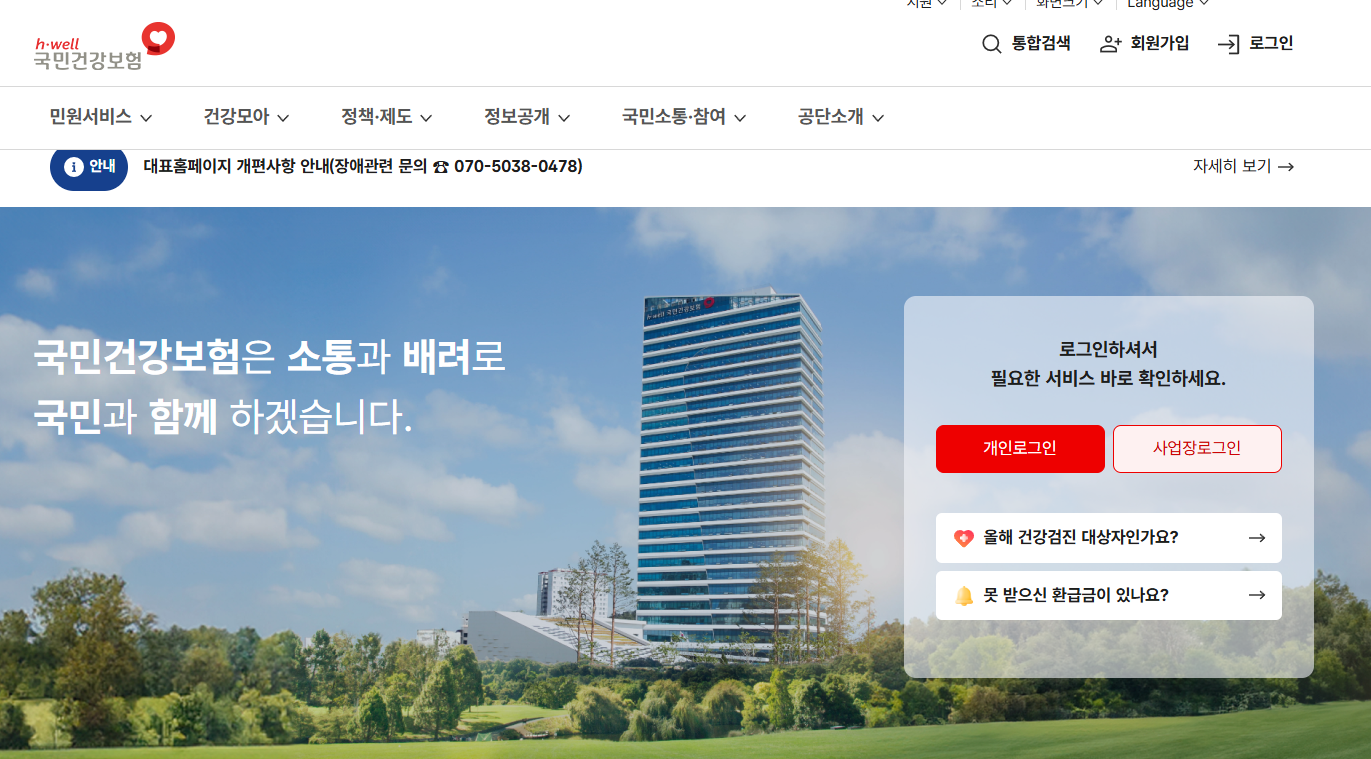 1. 국민건강보험 홈페이지에 접속합니다.