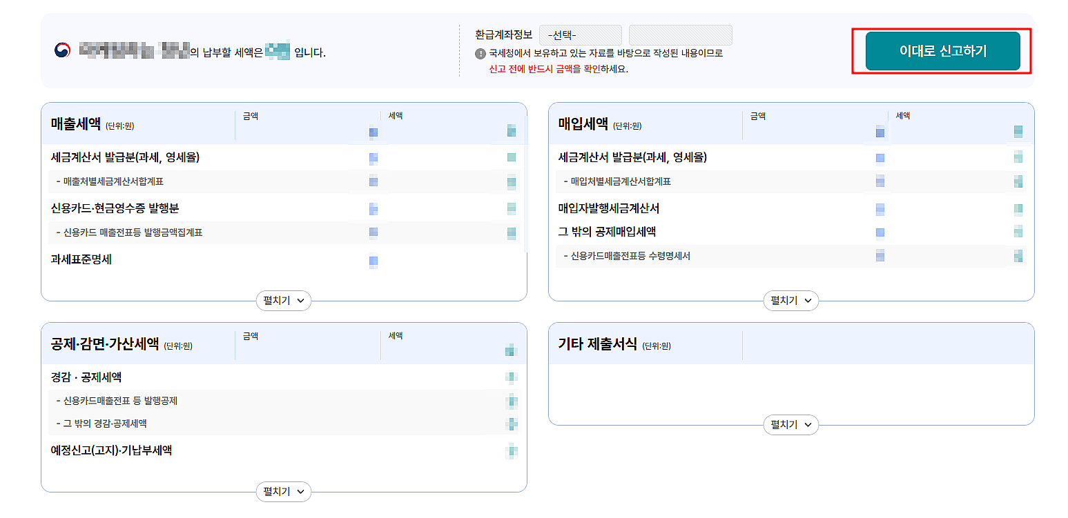 8. 납부할 세액을 확인하고 '이대로 신고하기'를 클릭합니다.