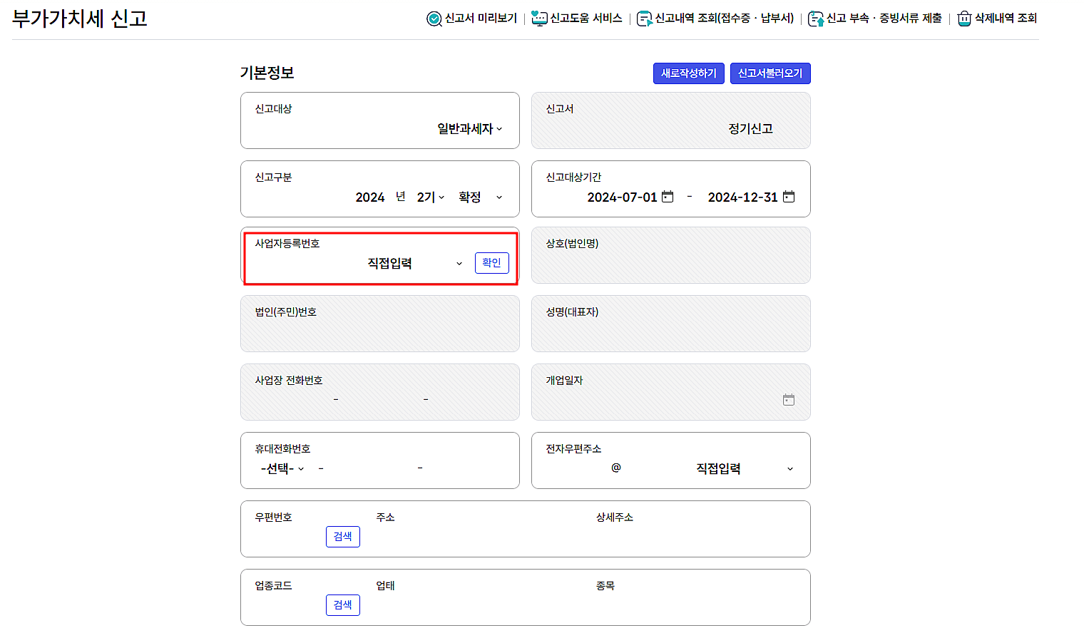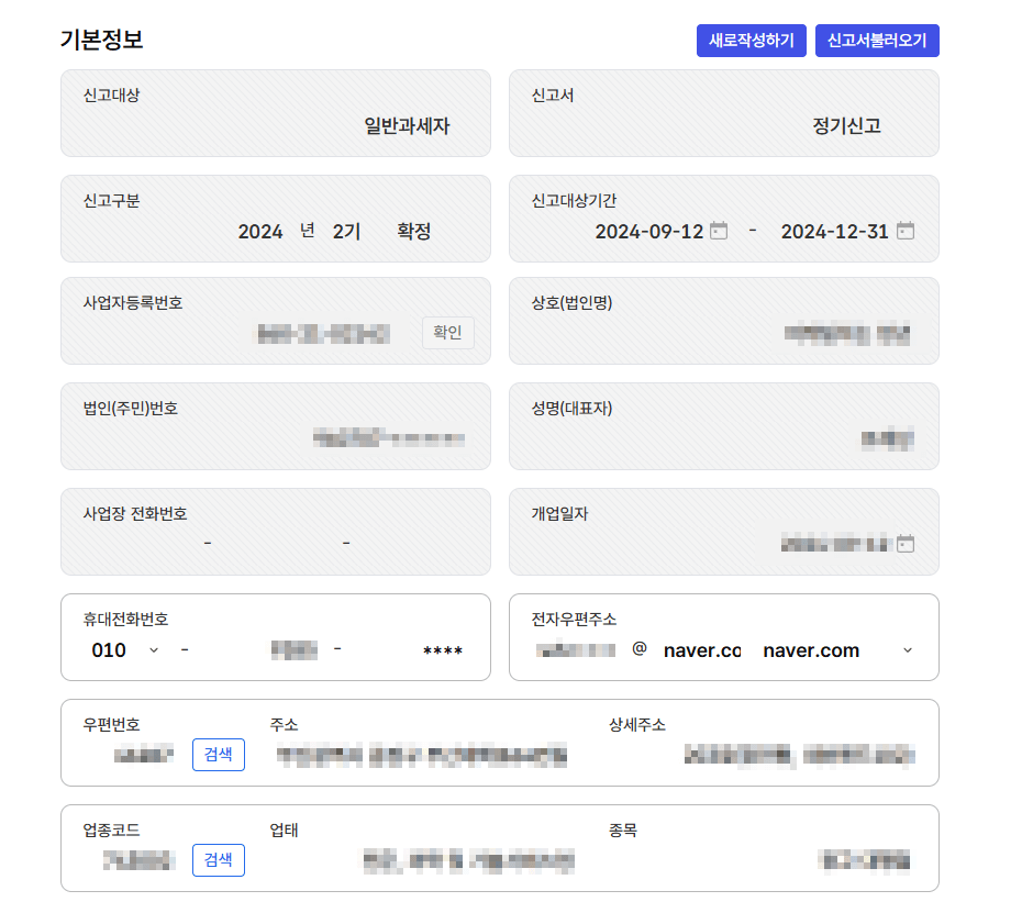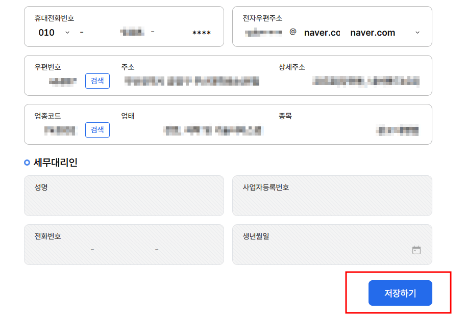 6. 사업자등록번호를 입력하면 정보들이 자동 입력 됩니다.