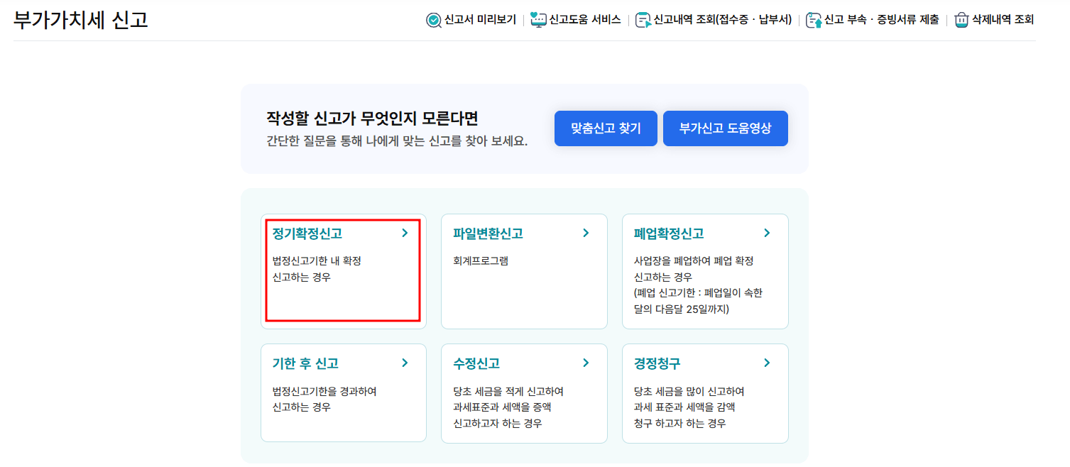 4. 정기확정신고를 클릭합니다.