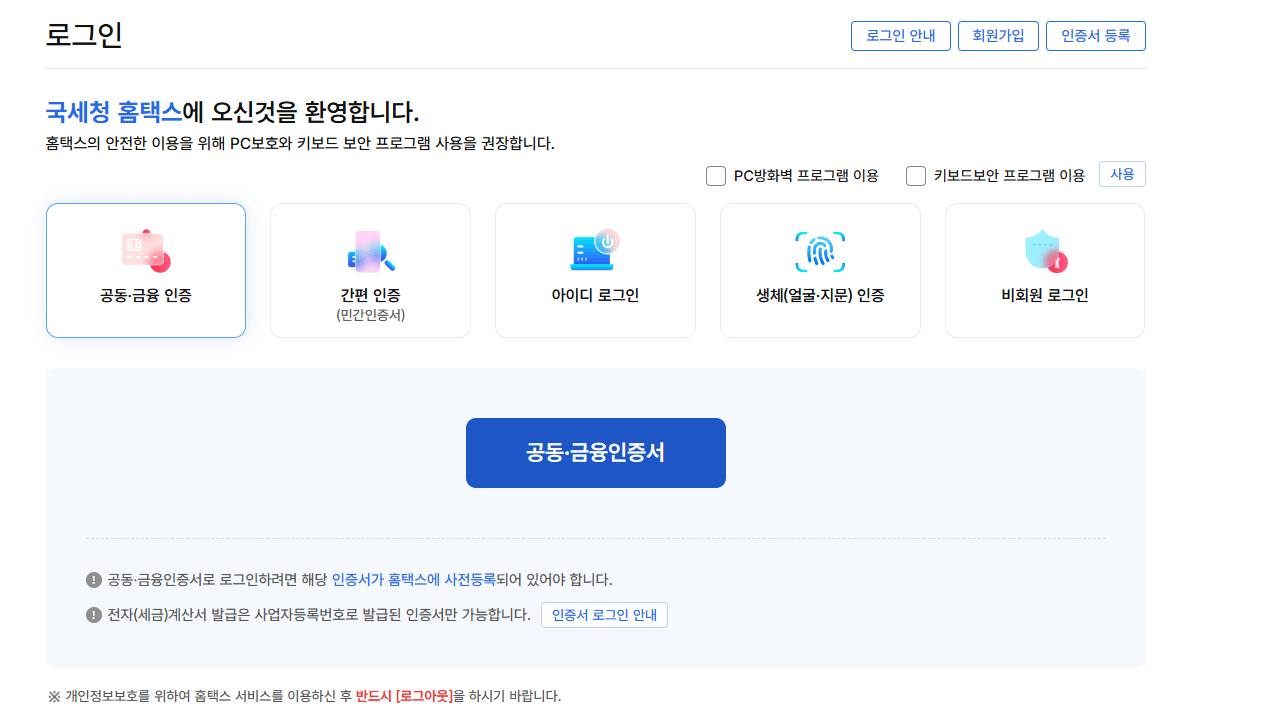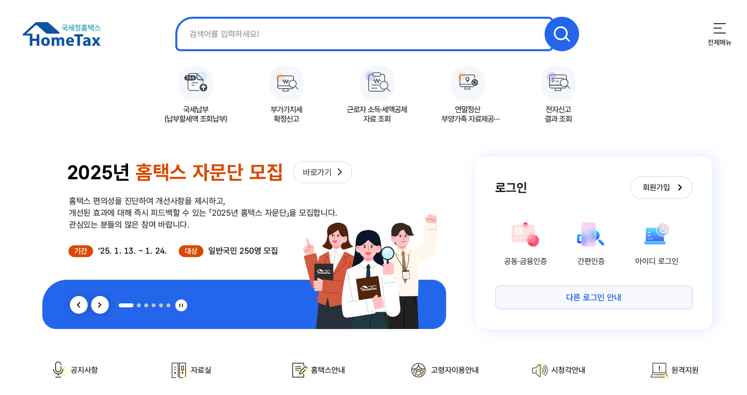 1. 홈택스 홈페이지에 접속합니다.