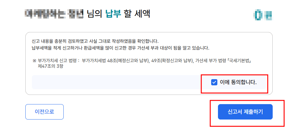 9. 동의함에 체크 후 '신고서 제출하기'를 눌러줍니다.
