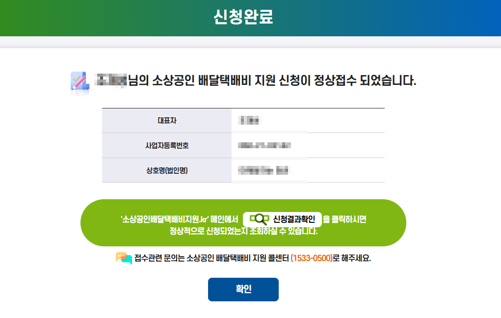 10. 신청결과를 확인하고 확인을 눌러줍니다.