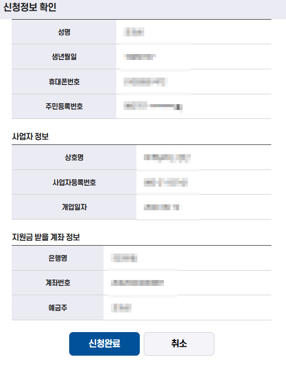 9. 신청정보 확인 후 신청완료를 선택합니다.