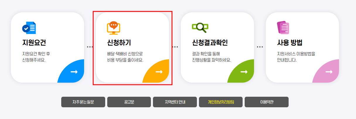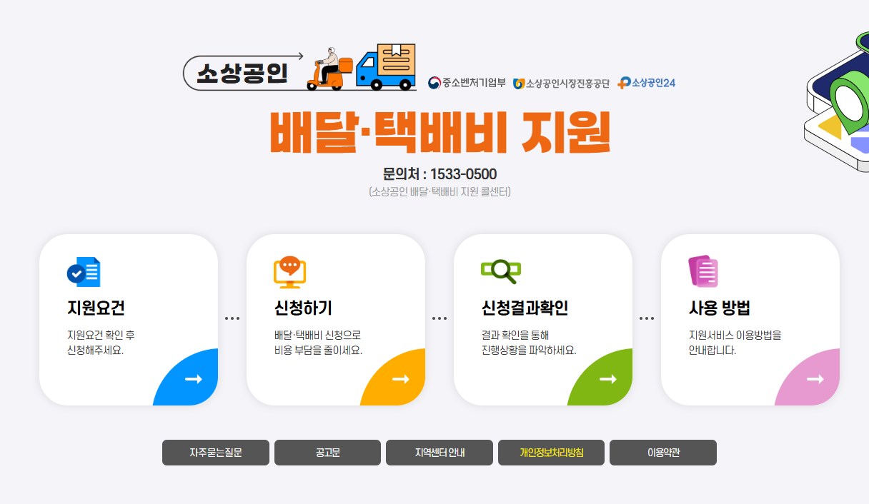1. 소상공인배달택배지원.kr로 접속합니다.