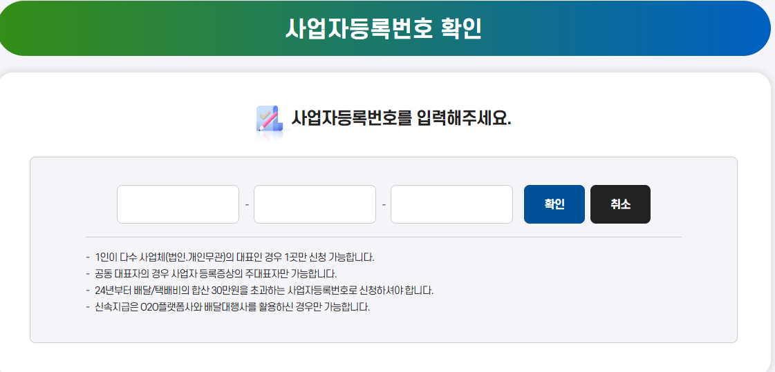 4. 사업자등록번호 입력 후 확인을 클릭합니다.