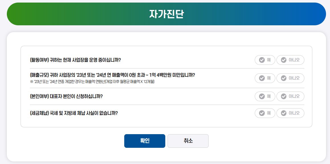 3. 자가진단을 진행 후 확인을 눌러줍니다.