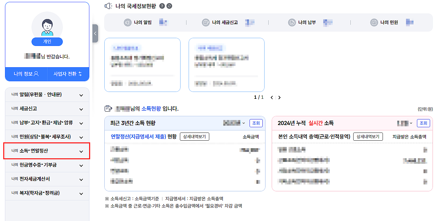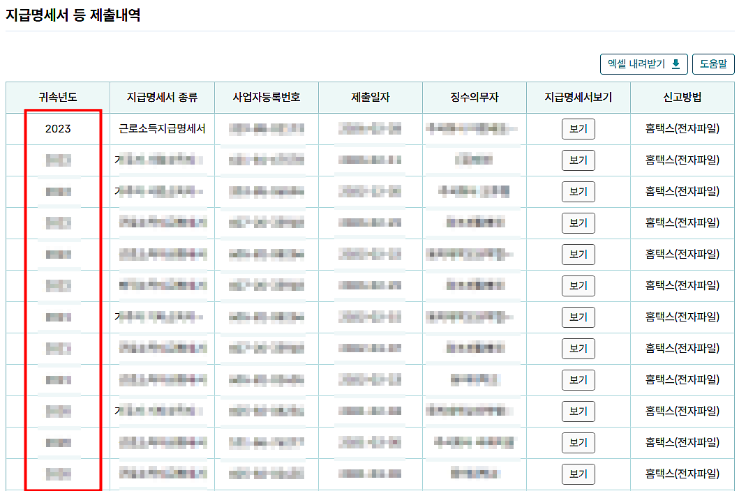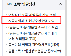 5. 지급명세서,원천징수영수증 내역을 선택합니다.