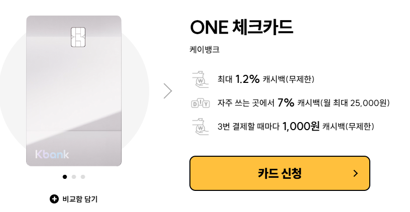 ONE 체크카드 신청하기